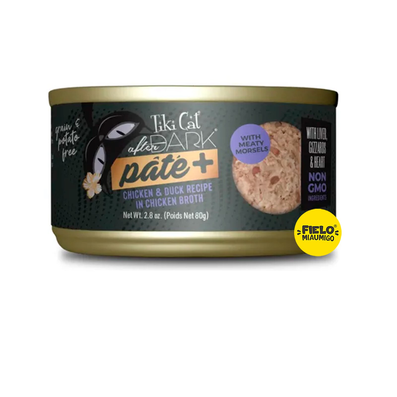 El bienestar de tu gato comienza con ingredientes reales. Tiki Cat After a Pate+ no es un paté común; está elaborado con pollo y pato de verdad, sumergidos en un nutritivo caldo de pollo que garantiza la hidratación que los felinos necesitan. Su textura “Pate+” es excepcionalmente cremosa, facilitando la ingesta incluso para gatos con paladares difíciles o problemas dentales. Al ser libre de granos y rellenos artificiales, es la nutrición pura que solo consigues en Fielo Miaumigo. 🌿🍽️