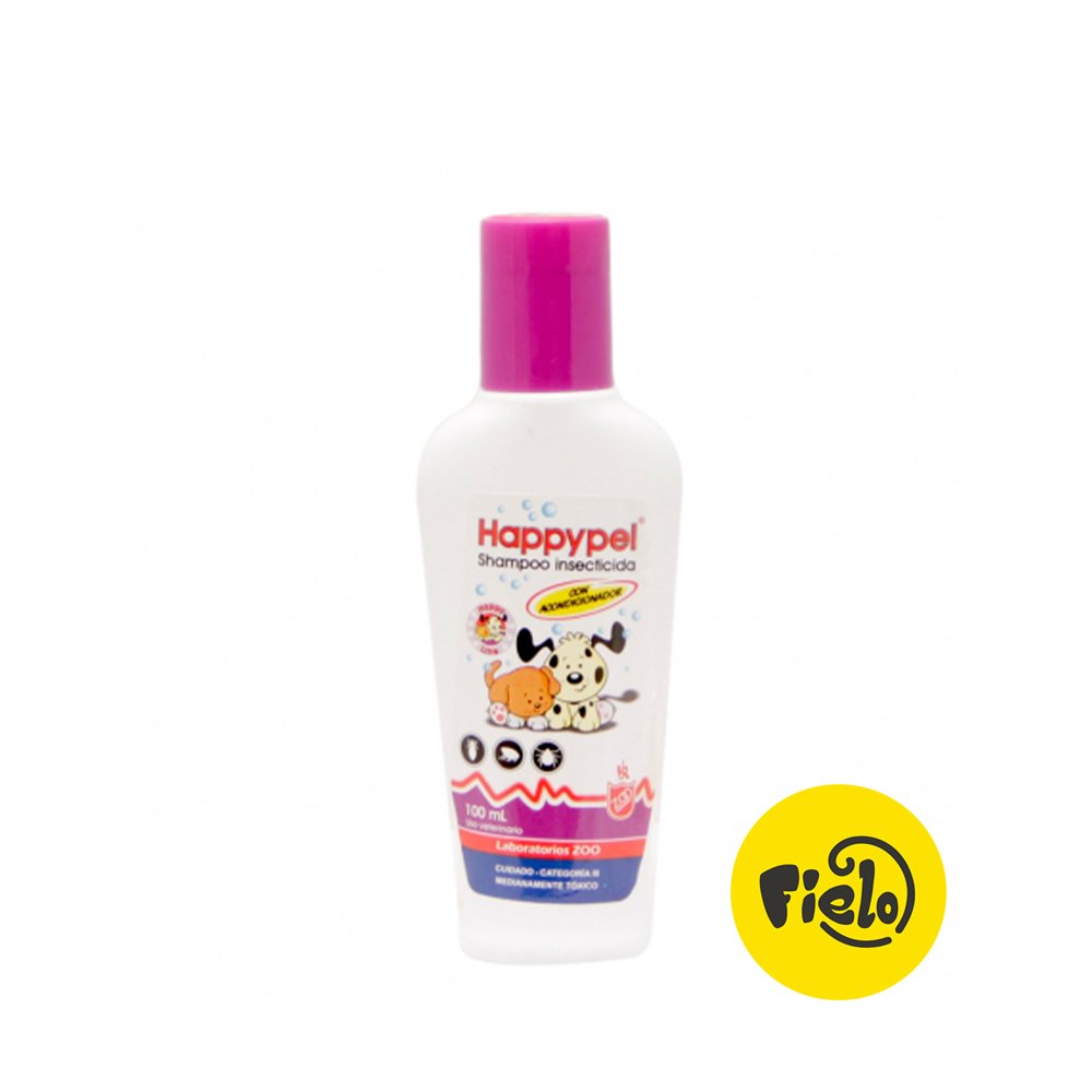 En Tienda de Mascotas: fielo.co, la higiene y la salud van de la mano. Happypel Shampoo Insecticida 100ml es un champú antipulgas para perros formulado con un ingrediente activo que garantiza la eliminación de pulgas, garrapatas y piojos al momento del baño. Su fórmula de doble acción no solo actúa como un potente insecticida para el control de ectoparásitos, sino que también ofrece una limpieza profunda del pelaje, removiendo suciedad, malos olores y dejando el pelo brillante y manejable. Es la herramienta ideal para tratar infestaciones activas y una parte importante del protocolo de medicina preventiva canina, proporcionando un alivio inmediato al picor y el malestar causado por los parásitos. Su presentación de 100ml es perfecta para razas pequeñas o para uso ocasional de refuerzo.